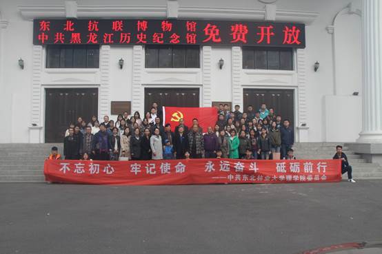 最后,参加此次活动的全体师生在抗联纪念馆前合影留念。活动结束后,发展对象张俊茹同志表示:“通过此次参观活动,我了解到了更多革命先辈的英勇事迹,也清楚今天幸福生活的来之不易以及共产党为国家建设的付出与奉献。今天的活动加强了我的入党决心与信心,在之后的学习生活中,我会更加积极的向党组织靠拢,争取早日站在党旗下。”