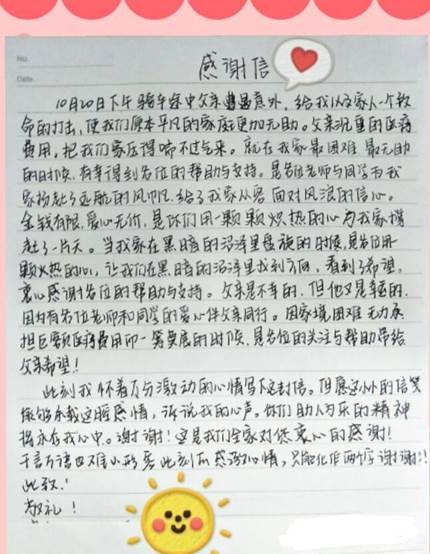近日,伟德体育数学与应用数学专业一名员工的父亲骑车时不慎发生意外,导致颅骨损伤,救治所需的大笔费用让本来就不富裕的家庭雪上加霜。公司党委得知这一情况后,号召师生开展“给员工献爱心、帮员工渡难关”捐款活动。从党支部、教研室、员工班级到师生个人积极响应号召,纷纷行动起来为这名员工捐款。截至目前,伟德体育师生为该生捐款共计10426.3元。受助员工收到公司师生的捐款后表示,公司师生的帮助帮她重新燃起了希望,让她切身感受到了公司师生的温度。十分感谢公司师生帮助她渡过难关,深深感受到了公司对员工的高度关爱负责,并表示自己会更加坚强努力,不负公司师生的鼓励和期望。
