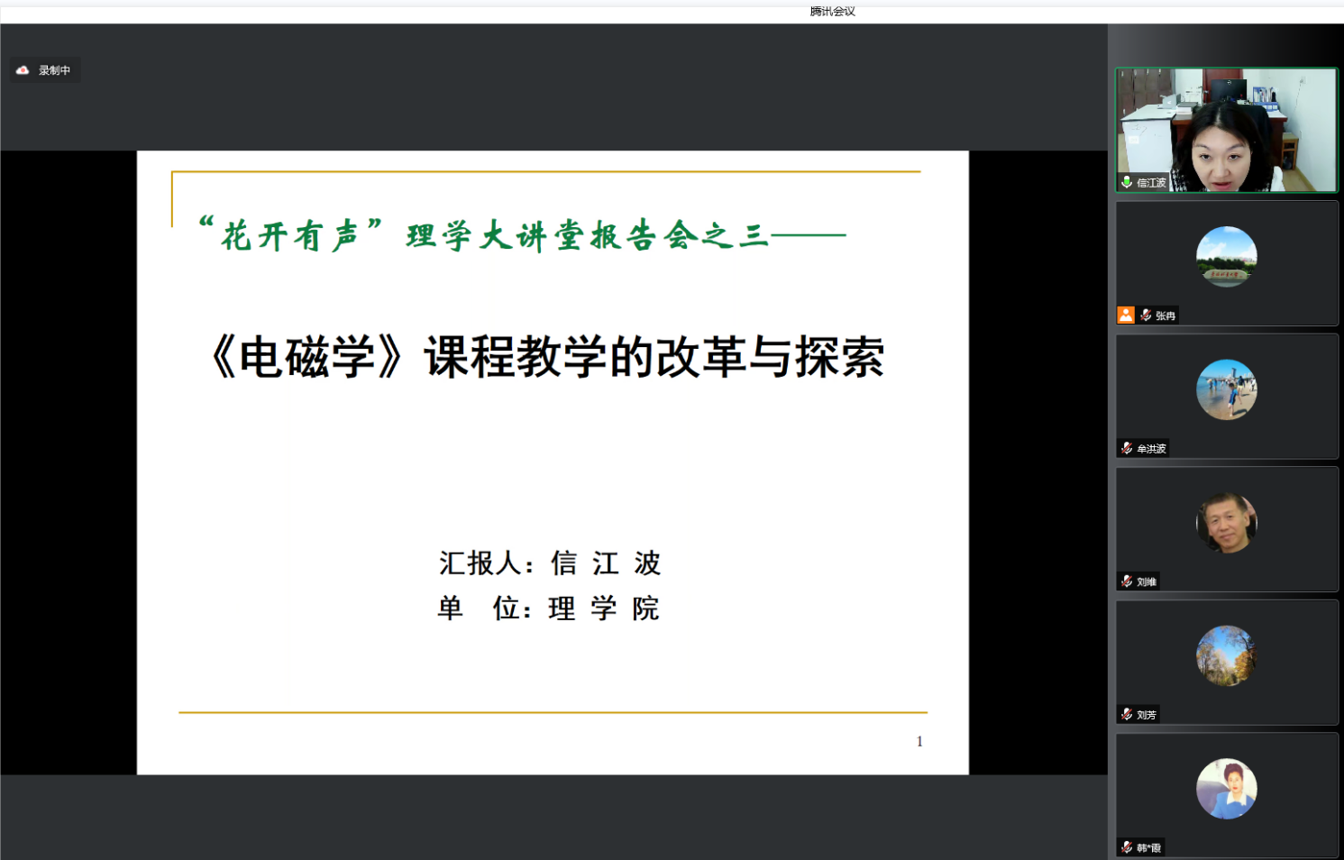 信江波讲师是伟德体育优秀中青年教师代表,她首先从电磁学课程建设、网站资源利用和课程评估三个方面分享了电磁学课程建设的经验,其次从教与学的转变、思维方式的改变和“2+1”行程性考核三个方面介绍了电磁学课程改革的进展情况,再以教学案例讲述如何从科学家精神、定理定律和实际应用中发现思政元素,同时分享了教学路上的心得体会和参加教学竞赛的切身感悟。信江波老师的精彩分享引发了教师的深入思考和热情互动。