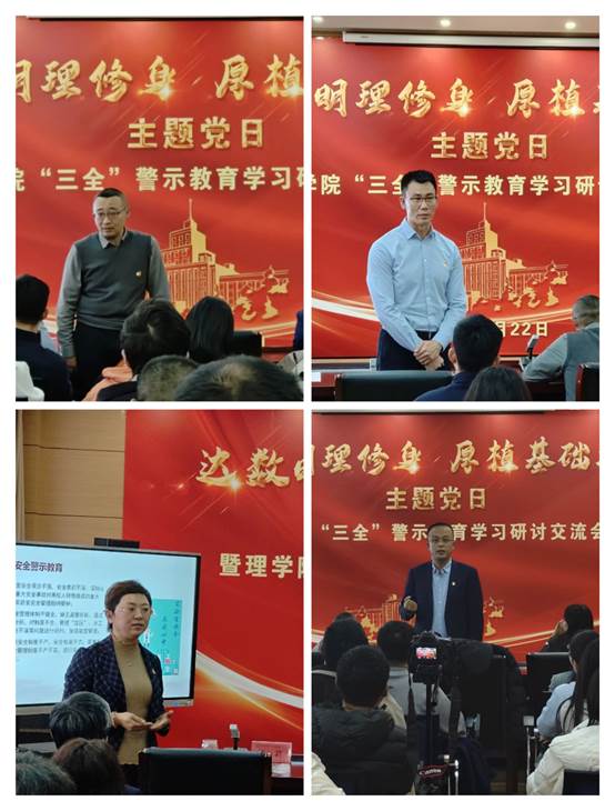 进行师德师风警示教育交流学习的四位党员教师分别选取师生关系、教学纪律、学术不端、不当言论等典型警示案例,结合多年从事教学科研工作的心得体会进行分享。