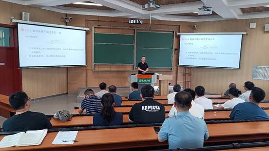 会议第一项内容为系主任兼专业负责人田赫示范教学。他分别从课程学习的重点与程序、数据处理及误差分析理论、有效数字的处理、实验曲线的描绘与拟合四个部分进行了详细地讲解示范。涵盖了重点内容的梳理、讲解时间分配、员工基础现状等重要方面。