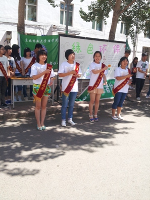 上午八点整,“绿冀”的志愿者们就兵分两路,一路来到篮球场参加社团联合会举办的巡游开幕式;一路来到3号楼前进行布置展示板等工作。巡游开幕式结束后,巡游活动在热烈氛围下正式开始,“绿冀”的志愿者们个个热情高涨,跟着巡游队伍进行宣传展示活动。巡游结束后,所有志愿者都来到3号楼的展示区,为协会进行宣传展示,并且由化学工程与工艺专业的郑明秋、薛娜、马文慧、包荷玉表演的《爱的翅膀》博得了大家的热烈掌声,充分体现了“绿冀”志愿者的青春与活力以及团队精神。