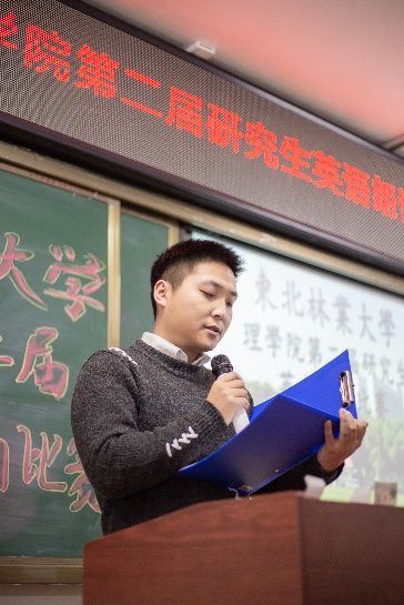 本次英文朗诵比赛的主题是“加强英语的学习与交流,展现当代研究生风采”。莅临本次大赛的评委有公司党委书记侯彦杰,外国语公司张艳秋教授,伟德体育研究生思想政治辅导员姜大伟,伟德体育方涛教授,伟德体育17级研究生会主席王莹。 开始前,侯彦杰书记就本次比赛给予了充分的肯定,同时也为参赛选手加油打气!
