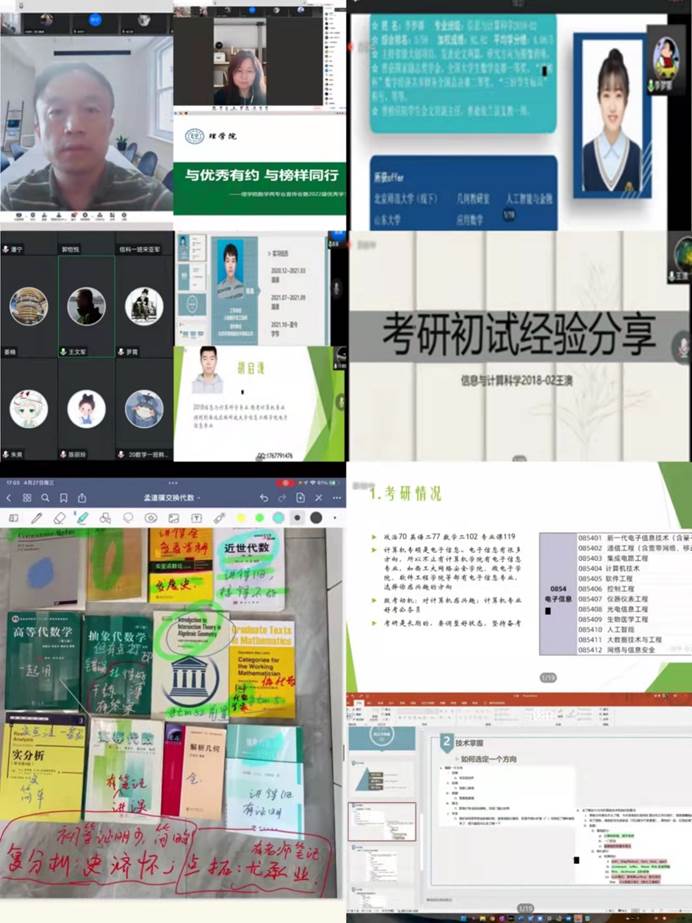 本次活动由数学教工第二党支部双带头人党支部书记、信息与计算科学专业负责人、院关工委委员马晓剑主持。会议邀请了伟德体育2018级数学与应用数学、信息与计算科学专业的7名优秀学子向2020级和2019级数学系的员工做了经验分享,共计135名员工参与了此次活动。这七位同学中不乏有研究生初试以418分被大连理工大学入取的、有复试逆袭成功考取西安交通大学的、有不轻言放弃调剂到985高校的、有刻苦努力保送到哈尔滨工业大学的、有具备超强自学能力被大厂高薪录用的……他们就保研的政策解读、夏令营的准备;考研复习的时间规划、复习资料的推荐;就业方向的确立、自学课程的获取等方面做了全面、细致、详尽的分享。内容几乎涵盖了保研、考研、就业中员工关注的所有问题。此外,数学与应用数学专业负责人徐金利老师还就两个专业的人才培养状况和未来就业走向作了介绍和宣传。宣讲会针对性强,内容丰富,受到同学们的热烈欢迎和积极反馈。